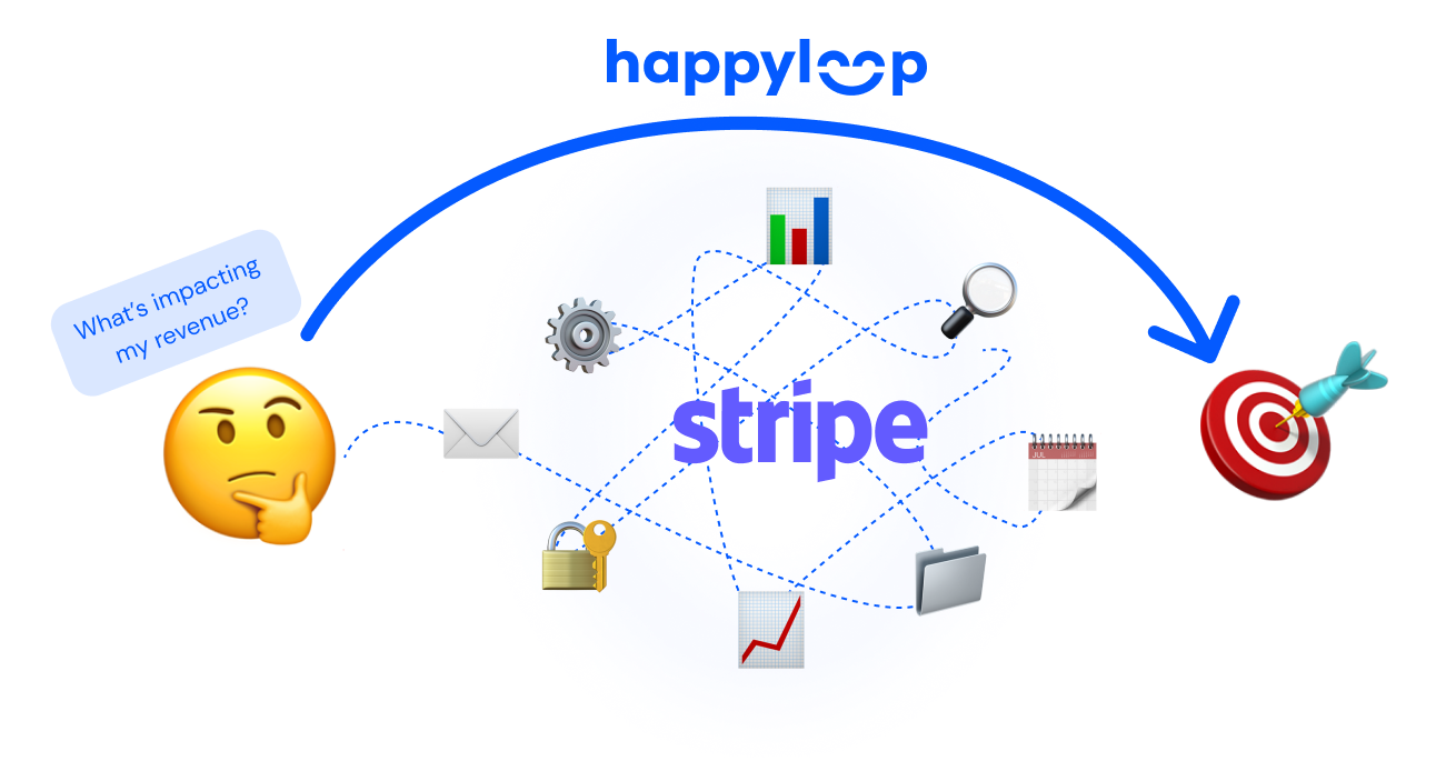 Stripe shows you what happened. HappyLoop shows you why. Understand churn, failed payments, upgrades, and more so you can recover revenue in minutes.